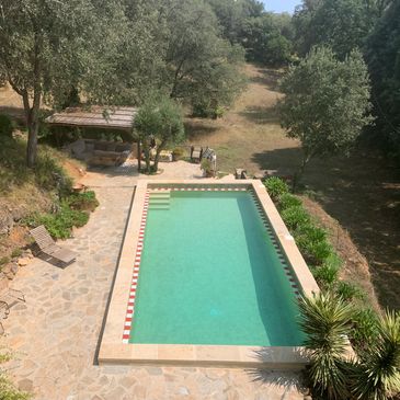 Set on 20,000m², Can Molinas is a serene retreat where contemporary design meets natural beauty. The estate features a stunning 10m x 5m designer saltwater pool, an outdoor shower, and two elegant pergolas—ideal for relaxation and entertaining. Surrounded by over 60 olive trees, as well as fig and oak trees, the property also boasts a picturesque stream and a private back entrance to the olive groves, enhancing its tranquil charm.