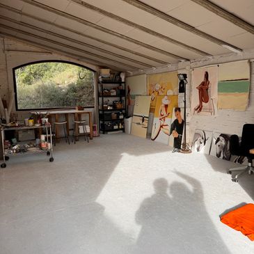 A versatile 8m x 4m space, currently serving as an art studio, presents endless possibilities—whether as a state-of-the-art home office, a private gym, a tranquil yoga retreat, or additional accommodation.